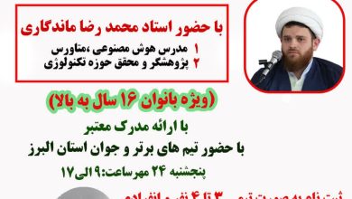 -      اولین رویداد آموزشی (بوت کمپ) هوش_مصنوعی در البرزاولین رویداد آموزشی (بوت کمپ) هوش_مصنوعی در البرز باموضوع: (مقاومت در آینه غزه) مدرس: استاد محمدرضا ماندگاری مدرس توانمند هوش… بیشتر بخوانید »