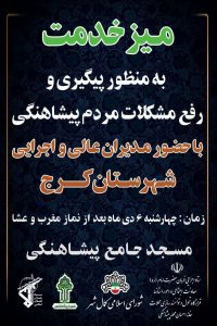 جلسه قرارگاه اجتماعی و میز خدمت شهرستان کرج در مکسجد جانع پیشاهنگی کمالشهر