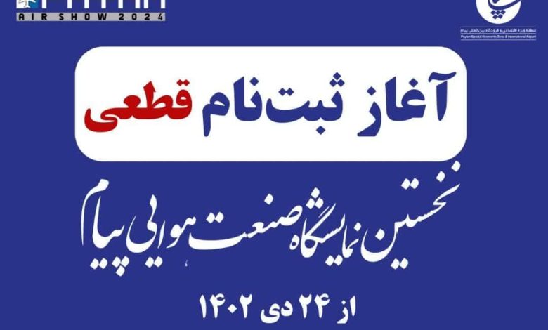 ثبتنام قطعی برای شرکت در نخستین نمایشگاه صنعت هوایی پیام از 24 دی آغاز میشود