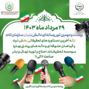 در این تور رسانه ای که به همت روابط عمومی ساز مان تات برگزار می شود، آخرین دستاوردهای تحقیقاتی بخش ذرت و گیاهان علوفهای و دانههای روغنی بهاره موسسه تحقیقات، اصلاح و تهیه نهال و بذر ارایه خواهد شد.