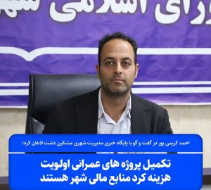 کریمی پور: الحمدلله امروز با ده ها پروژه فعال و در دست اقدام شاهد پویایی و نشاط عمرانی در سطح شهر هستیم و با نسبت بندی بین اقدامات انجام شده و جاری و منابع مالی و امکانات موجود باید گفت که مدیریت شهری مشکین دشت یکی از شهرهای پیشرو در عمران و آبادانی در سطح کشور و استان البرز می باشد.