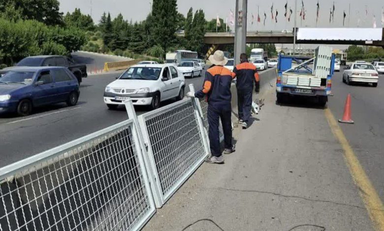 اجراي عملیات تهیه و نصب نرده رفیوژ میانی در آزادراه تهران-کرج-قزوین