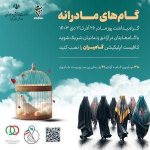 با شرکت طرح ملی گام های مادرانه که با هدف آزاد سازی زنان سرپرست خانوار از زندان شروع شده است از ۲۶ الی ۲ دی ماه با ثبت گام هایتان در گامیران در این امر خیر شریک شوید.