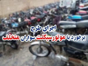 فرمانده انتظامي شهرستان چهارباغ از اجراي طرح برخورد با موتورسيکلت هاي متخلف با توقيف 34دستگاه موتورسيکلت در اين شهرستان خبر داد