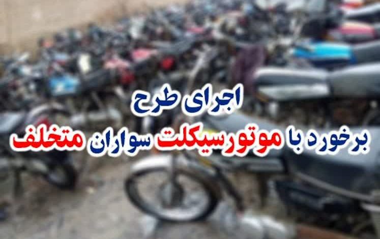 به گزارش خبرنگار خبرگزاري پليس، سرهنگ کامران چراغي اظهار داشت: در پيرو مطالبات و درخواست مردمي مبني بر برخورد با موتورسيکلت هاي متخلف که اقدام به مزاحمت ، فاقد پلاک و همچنين فاقد مدارک بوده که نارضايتي بسياري از سوي شهروندان را به همراه داشته است، به مدت 48 ساعت به مرحله اجراء گذاشته شد.