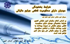 مدیرکل امور مالیاتی استان البرز از شرایط بخشودگی مؤدیان دارای محکومیت قطعی جرایم مالیاتی در صورت پرداخت یا ترتیب پرداخت مالیات و نداشتن محکومیت قطعی به جرایم مالیاتی طی پنج سال اخیر، خبر داد.