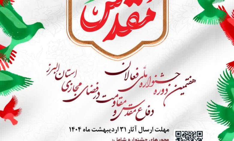 شرکت کنندگان تا پایان اردیبهشت ماه سال ۱۴۰۴ فرصت دارند تا آثار خود را به دبیر خانه جشنواره به آدرس: کرج بوستان جهان نما مرکز فرهنگی دفاع مقدس استان البرز ارسال فرمایند.