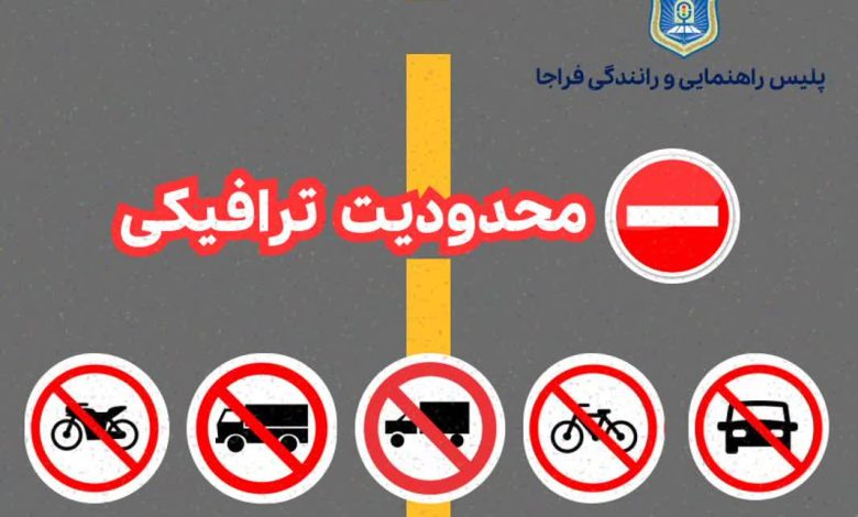 وی گفت: تردد موتورسیکلتها از ساعت ۰۷:۰۰ روز چهارشنبه ۵ شهریور تا ساعت ۰۶:۰۰ روز سهشنبه ۱۱ شهریور در محورهای کرج-چالوس، هراز، فیروزکوه و همچنین محورهای مشهد – سبزوار، مشهد – تربتحیدریه و مشهد – قوچان و بالعکس ممنوع است.