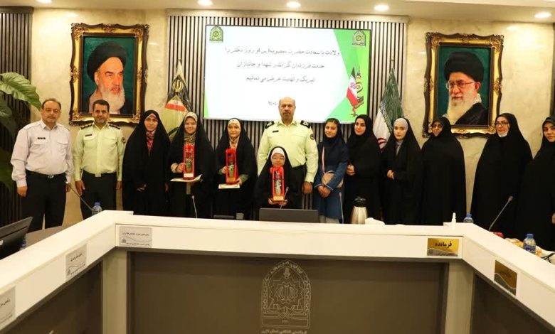 تجليل فرمانده انتظامي استان از جمعي از دختران کارکنان به مناسبت ولادت حضرت معصومه (س) و روز دختر