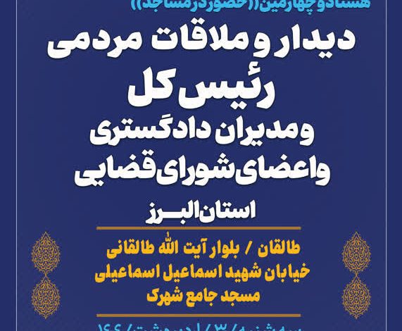 دیدار و ملاقات مردمی رئیس کل و مدیران دادگستری و اعضای شورای قضایی استان البرز در طالقان