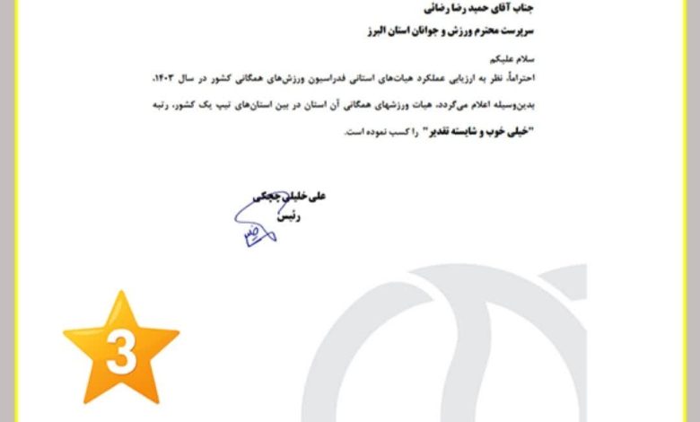 هیئت ورزش های همگانی استان البرز، برای سومین سال پیاپی جزء هیئت های برتر کشور در ارزیابی سال ۱۴۰۳ قرار گرفت