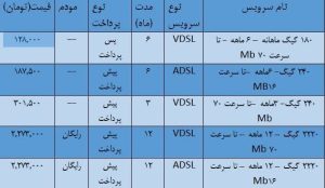 سرویسهای متنوع adsl و vdsl با مودم رایگان