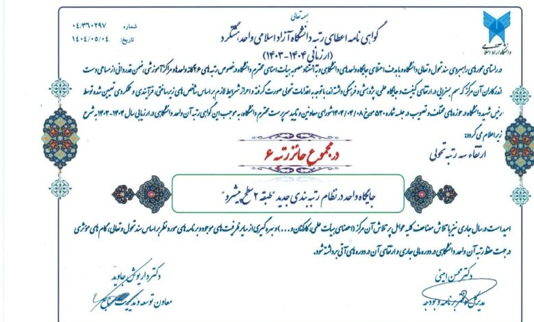 همچنین در این ارزیابی، واحد هشتگرد با سه رتبه ارتقا از رتبه ۹ به جایگاه 6 و مرکز نظرآباد از رتبه ۱۹ به جایگاه 18 دست یافتند؛ مجموعه موفقیتهایی که موقعیت دانشگاه آزاد اسلامی استان البرز را بهعنوان یکی از قطبهای علمی و پژوهشی کشور بیش از پیش تحکیم میبخشد.