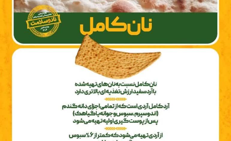 نان کامل از آردی با سبوسگیری کمتر از ۶٪ تهیه میشود و حاوی جوانه یا گیاهک گندم است.