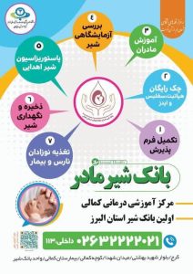 مرکز آموزشی درمانی کمالی در راستای حمایت از نوزادان نارس و محروم از شیر مادر، از مادرانی که امکان اهدای شیر دارند دعوت مینماید تا با مراجعه به بانک شیر مادر این مرکز، در ارتقاء سلامت و رشد این نوزادان سهیم باشند.