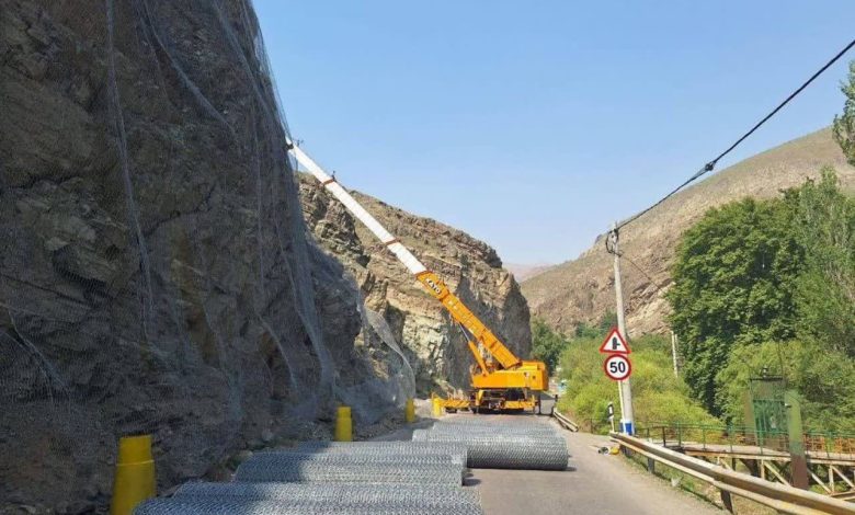 اجرای ۴۰ هزار مترمربع توری سنگ در محور کرج–کندوان برای افزایش ایمنی جاده