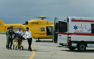 پرواز سوم انتقال مصدوم ۲۲ساله با کاهش سطح هوشیاری بدنبال سقوط از ارتفاع و آسیبهای متعدد سر و ستون فقرات.